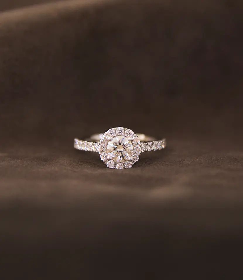 Vi har ett stort sortiment av förlovningsringar, alliansringar och diamanter. Hos oss kan du designa din förlovningsring helt efter egna önskemål. Vi strävar alltid efter att lämna bästa möjliga service. Vi har en egen verkstad där vi tillverkar alla våra vigsel och förlovningsringar för hand. Du kan få ringarna i vitguld, guld, roséguld och platina. Välj bland hundratals olika solitärringar, alliansringar, haloringar eller andra diamantringar.