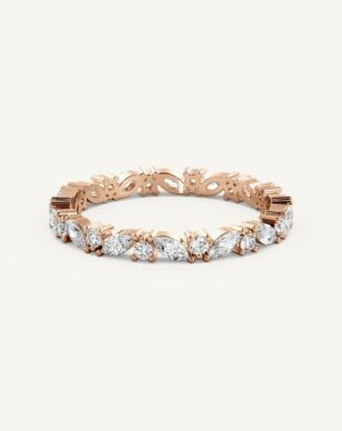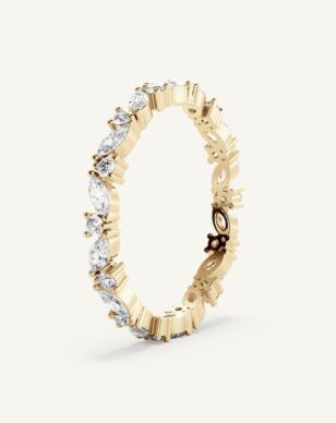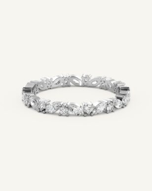 Adriana Mini är en förfinad och elegant vigselring där briljantslipade och navettslipade diamanter samspelar i en unik och harmonisk design. De olika slipningarna framhäver varandras skönhet och skapar en subtil men gnistrande effekt runt hela ringen. Ringen upplevs nätt med en touch av vintage och nutid. Välj i antingen halv-allians eller hel-allians och i vad för typ av diamanter.