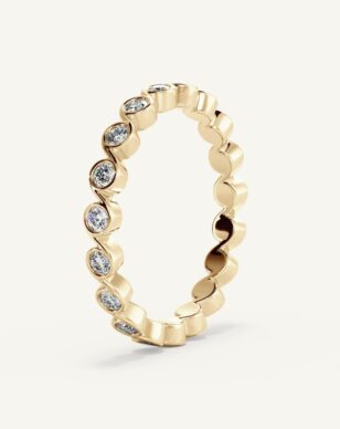 Bianca är en unik alliansring där briljantslipade diamanter smälter samman med en mjukt vågformad design. Den organiska formen ger ringen en romantisk och speciell karaktär, samtidigt som den känns modern och tidlös. Perfekt att bära tillsammans med olika typer av förlovningsringar.