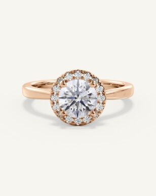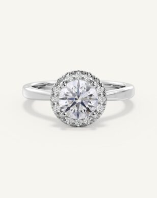 Filippa är en vacker halo-ring med en låg och stilren design som känns både modern och klassisk. Den runda diamanten i mitten omges av en glittrande cirkel av små diamanter som förstärker dess lyster och ger ringen en extra gnista. Den smalare skenan gör att ringen känns nätt och elegant Filippa passar perfekt för dig som vill ha en enkel och stilren halo-ring med en tidlös känsla.