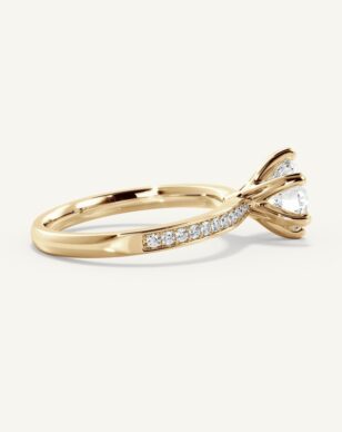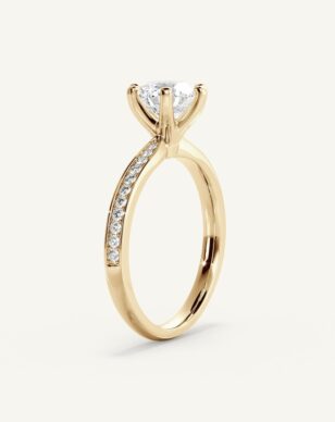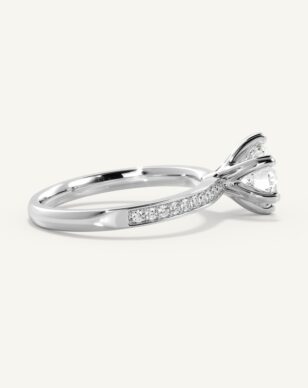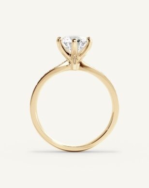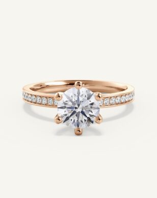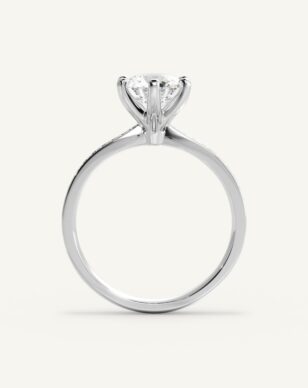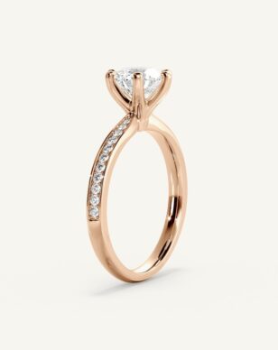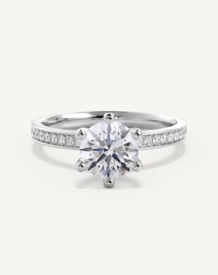 Carmen är en tidlös klassiker som fått ett förfinat lyft med gnistrande sidostenar längs den smala, subtilt insvängda skenan. Den briljantslipade mittstenen hålls av eleganta, traditionella klor och vilar i en vackert upphöjd fattning. Sidostenarna tillför ett diskret men strålande skimmer som ger ringen en sofistikerad och lyxig känsla.