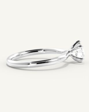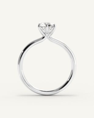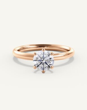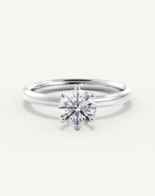 Alba-ringen kombinerar klassisk skönhet med en lätt och modern känsla. Den rundslipade diamanten hålls säkert på plats i en sexkloinfattning som framhäver stenens naturliga glans. Den runda, polerade skenan ger ett harmoniskt intryck och gör ringen bekväm att bära varje dag. Med sin luftiga korg och rena linjer blir detta en ring som förmedlar både enkelhet och utsökt hantverk.