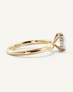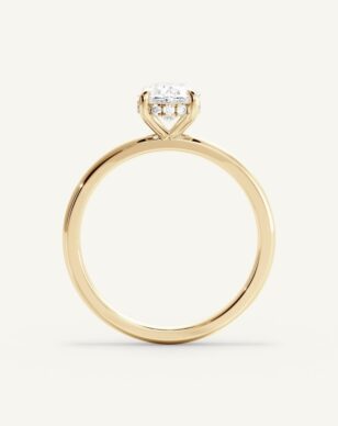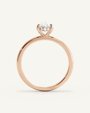 Solitärringen Celeste med en oval diamant är en av våra mest populära modeller, och det är lätt att förstå varför. Den eleganta ovala stenen, känd för sin mjuka form och imponerande briljans, vilar i en klassisk fattning som kompletteras av en “hidden halo” – en dold rad av gnistrande diamanter under huvudstenen som skapar en extra dimension av ljus och lyster. Ringens kupade form ger en mjuk och behaglig känsla på fingret, och designen är dessutom anpassningsbar, vilket innebär att du kan justera detaljer som bandets bredd för att skapa en ring som speglar din personliga stil.