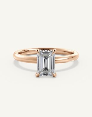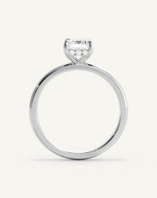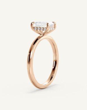 Celeste med en smaragdslipad diamant är en ring som kombinerar klassisk elegans med en detalj som bara avslöjas vid en närmare blick. Den smaragdslipade stenen, med sina rena linjer och tidlösa proportioner, ramas in av en diskret “hidden halo” – en dold rad av små diamanter under huvudstenen som tillför en subtil glimt av extra briljans. Ringens minimalistiska design låter den smaragdslipade stenen stå i fokus, medan den dolda detaljen ger ett unikt intryck som bara syns från profilen.