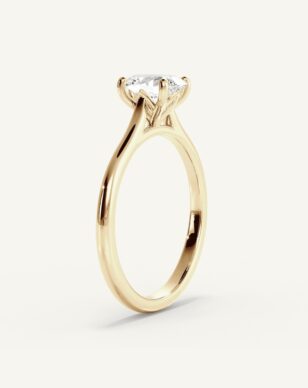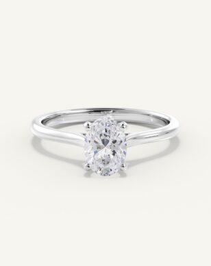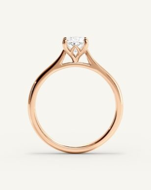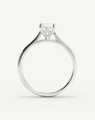 Kiara är en solitärring med en ovalslipad diamant som hålls av fyra klor, en infattning som framhäver stenens form och elegans. Underifrån bärs diamanten av en korg med ett bladliknande mönster – en detalj som ger ringen en romantisk och unik karaktär. Den smala, polerade skenan är rundad och följer fingret mjukt, vilket låter diamanten stå i centrum. En ring där naturinspirerad design möter klassisk enkelhet.