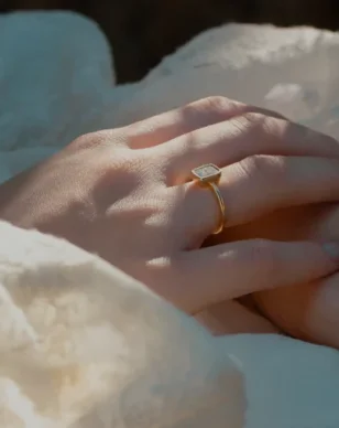 Melanie är en förlovningsring med det lilla extra. Den här solitärringen är klassisk men har en så kalla hidden-halo under mittstenen. En detalj vi bara ÄLSKAR! Vi har lagt extra mycket kärlek på att designa den här ringen. Varje sväng, varje form och detalj är uttänkt. Melanie är 1.5mm bred och en av våra tunnare och nättaste ringar just för att mittstenen och hidden-halon ska få all fokus.