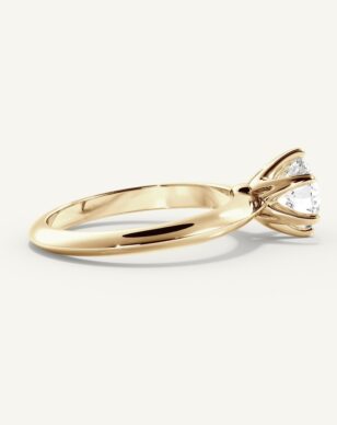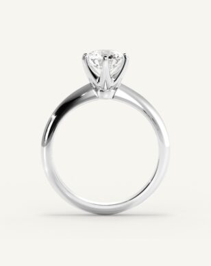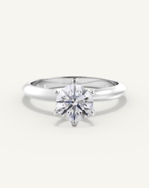 Sofia är en solitärring med en rund briljantslipad diamant som hålls av sex nätta klor. Diamanten framträder tydligt tack vare den klassiska infattningen, samtidigt som skaftet med sin knivkant ger en skarp och elegant linje runt fingret. Kombinationen av mjuka former och markerad profil gör ringen både stilren och personlig – en modell för dig som söker något klassiskt med en egen karaktär.