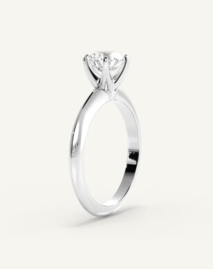 Sofia är en solitärring med en rund briljantslipad diamant som hålls av sex nätta klor. Diamanten framträder tydligt tack vare den klassiska infattningen, samtidigt som skaftet med sin knivkant ger en skarp och elegant linje runt fingret. Kombinationen av mjuka former och markerad profil gör ringen både stilren och personlig – en modell för dig som söker något klassiskt med en egen karaktär.