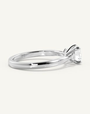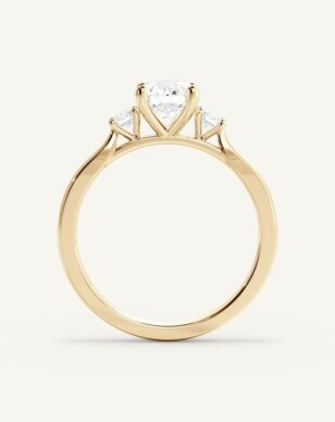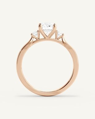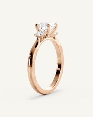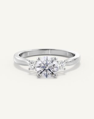 Amanda är en tidlös, klassisk trestensring. Den briljantslipade mittstenen flankeras av två mindre diamanter om 0.10ct/st, vilka lyfter fram huvudstenens lyster och skapar en harmonisk design. Bandet är diskret insmalnat från botten för att ge en nätt och elegant känsla ovanifrån. Perfekt för den som vill ha en ring med det lilla extra.
