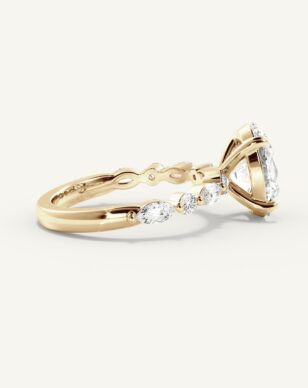 Vår Polpular Cherie-ring är en riktig favorit för dig som vill kombinera klassisk skönhet med modern design. Ringen är prydd med en gnistrande oval diamant i mitten, omgiven av mindre diamanter i olika slipningar längs bandet som ger ett vackert och livfullt intryck. Perfekt för livets största ögonblick.